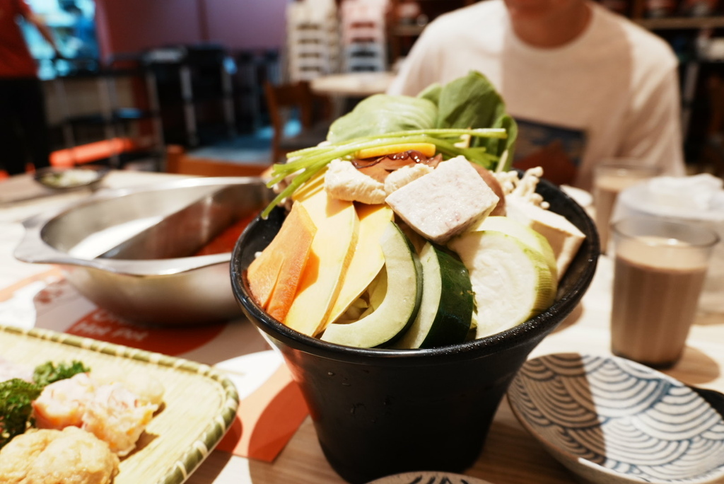 菜盤有各種蔬菜、菇類,然後沒有火鍋料這點很棒~